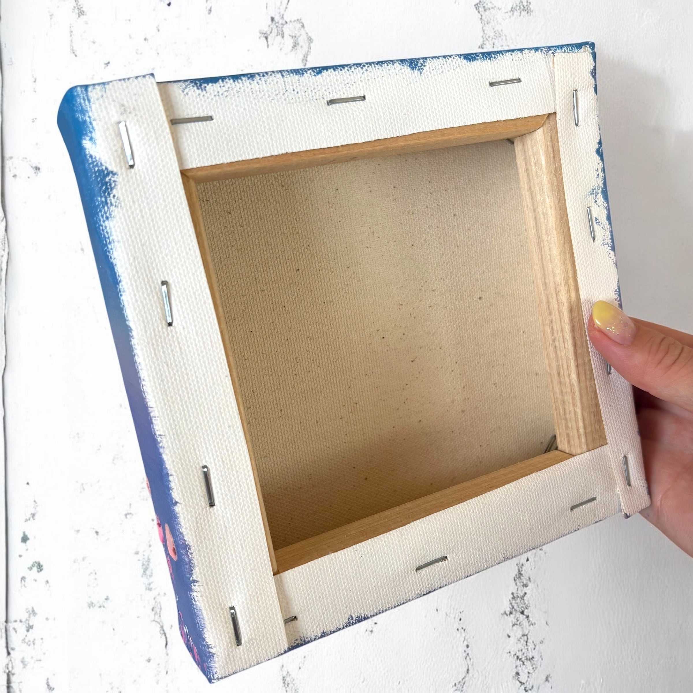 ✴︎壁掛け用フックなし、押しピンを木枠にひっかけて飾れます。